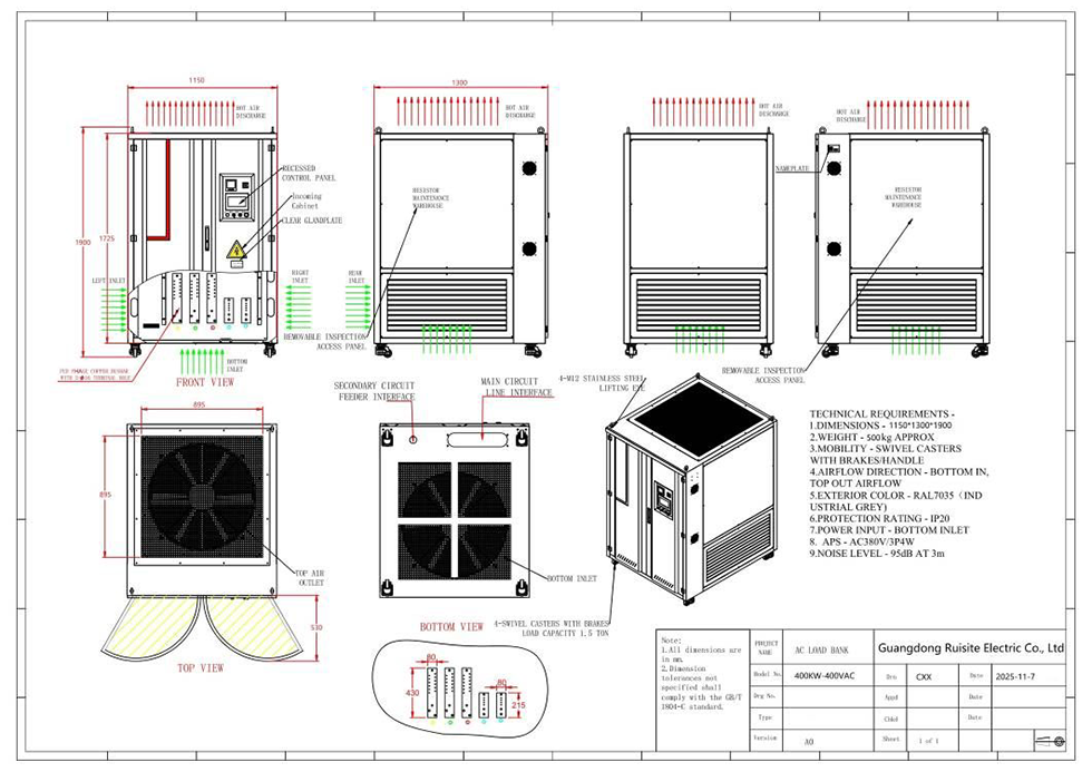 تقدم RST Electric بنك تحميل عالي التحمل بقدرة 400 كيلو وات و400 فولت مصمم للتحقق من صحة نظام طاقة التيار المتردد على نطاق واسع. مصمم لاختبار المولدات على نطاق المرافق، وتشغيل UPS للمهام الحرجة، وتطبيقات الطاقة الصناعية، يوفر بنك التحميل AC بقدرة 400 كيلو وات 400 فولت تحميلًا مقاومًا عالي الدقة مع تحكم متقدم في الخطوات وحماية شاملة للسلامة. تم تصميمه للتشغيل المستمر بالحمل الكامل، ويتميز بتبريد الهواء القسري، وهيكل متين بتصنيف IP20، وأوضاع تحكم مزدوجة 4 بما في ذلك واجهة HMI المحلية وواجهة الكمبيوتر/Modbus عن بعد. سواء تم نشره في محطات توليد الطاقة أو مراكز البيانات واسعة النطاق أو منشآت الطاقة المتجددة، فإن بنك الأحمال هذا يوفر الموثوقية والدقة المطلوبة لبيئات الاختبار الصعبة.